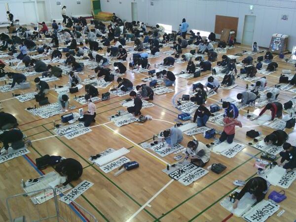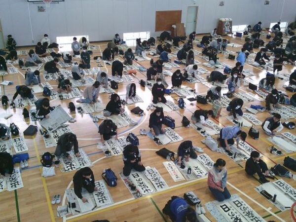 体育館や多目的室などを使用しながら、一枚一枚集中して書き上げていました。(写真は6年生が体育館で実施時のものです。)