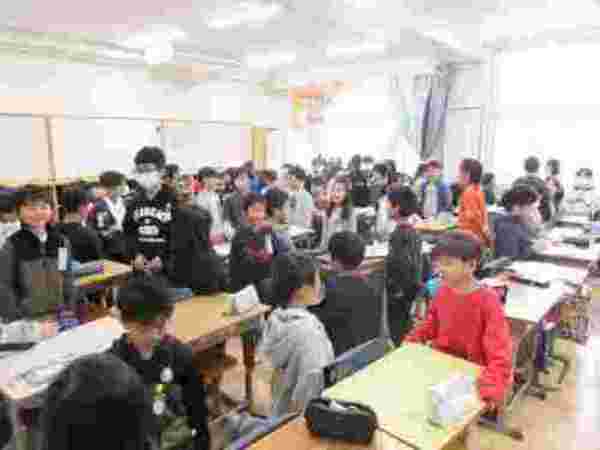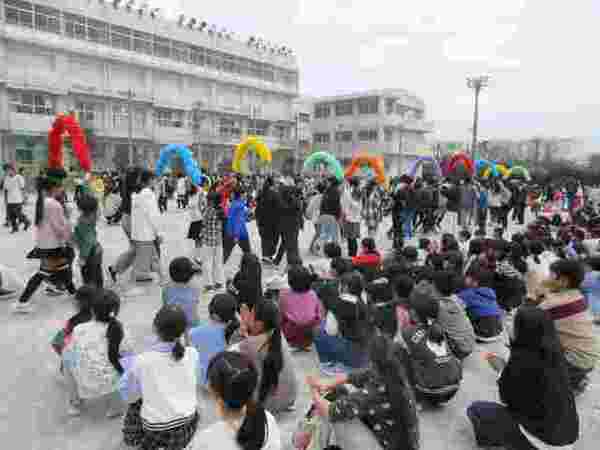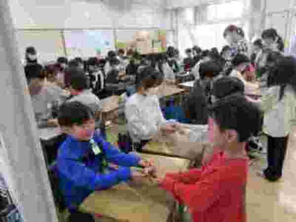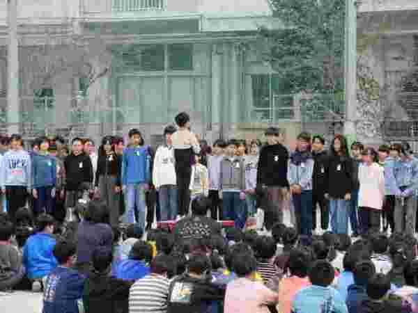 3月23日(月)に卒業生とお別れする「離別式」を行いました。朝の時間に1年生が在校生代表で卒業生に胸花を渡しに教室へ行きました。その後、校庭にみんなで集まり、卒業をお祝いしました。例年と違い、卒業式前日に実施をし、ゆっくりとお別れの時間を過ごせたように感じます。